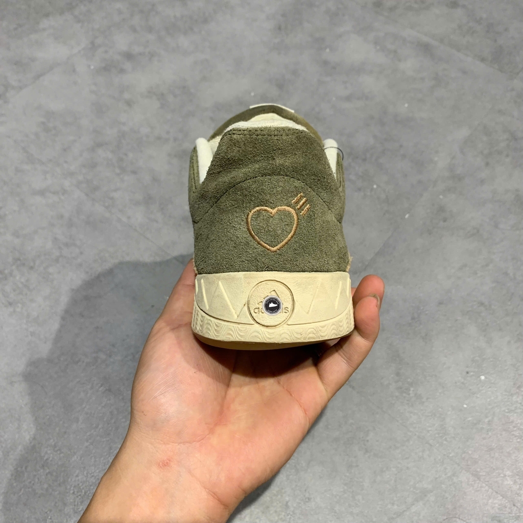 - **Điểm nhấn:** Logo trái tim đặc trưng của Human Made được thêu tinh tế ở gót giày và dòng chữ "Gears for futuristic teenagers" in trên dây giày.