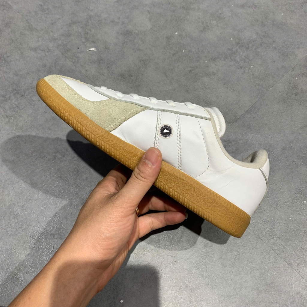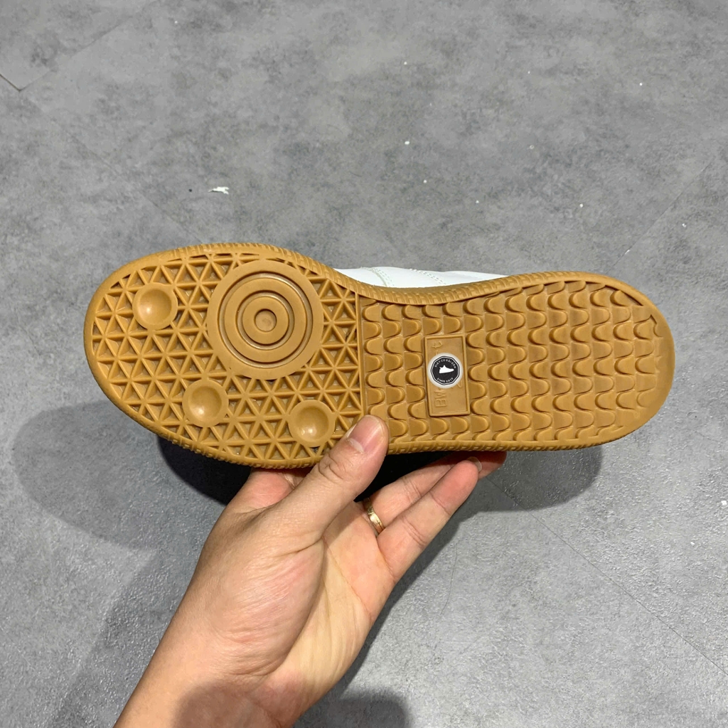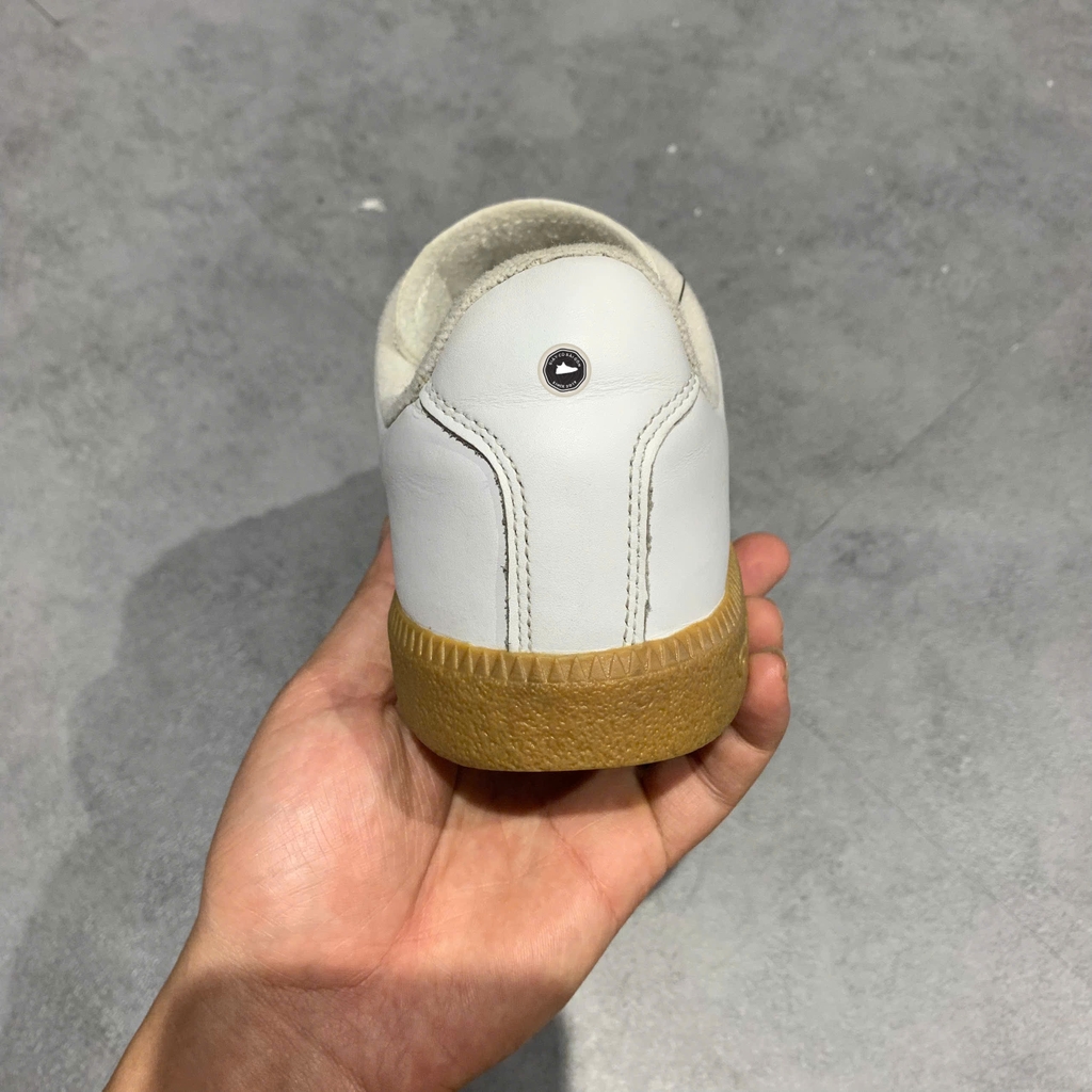Phối màu: Chủ đạo “Footwear White / Footwear White / Chalk White” – toàn trắng tinh khiết, nhẹ nhàng; đế ngoài gum brown (gum sole) tạo độ tương phản nhẹ và vintage.