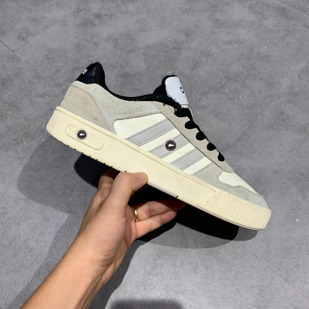 Thiết kế: Sneaker low-top với silhouette gọn gàng của Adidas D-Pad Classic; upper phối màu nhẹ nhàng pastel “Light Blue / Grey” cùng chi tiết đục lỗ thoáng khí.
