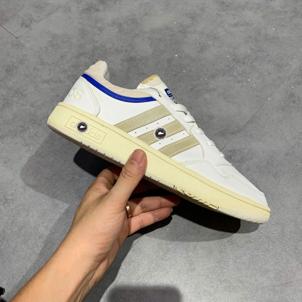 📝 Mô tả chi tiết sản phẩm: Giày Adidas Hoops 3.0 mang phong cách bóng rổ cổ điển với thiết kế cổ thấp, dễ dàng phối hợp với nhiều trang phục. Thân giày làm từ da tổng hợp bền bỉ, dễ dàng vệ sinh. Lớp lót bằng vải dệt mang lại cảm giác thoải mái và thoáng khí. Đế ngoài bằng cao su bền chắc, đảm bảo độ bám sân tốt. Phối màu "Chalk White" (Trắng Phấn) chủ đạo kết hợp với các chi tiết Cloud White và Core Black tạo nên vẻ ngoài thanh lịch, dễ phối đồ. Đây là mẫu giày lấy cảm hứng từ thể thao bóng rổ, mang đến sự kết hợp giữa phong cách hiện đại và sự thoải mái cho việc sử dụng hàng ngày. Nhấn giày hãng 2hand chính hãng đã qua sử dụng tại Giày Cũ Sài Gòn.