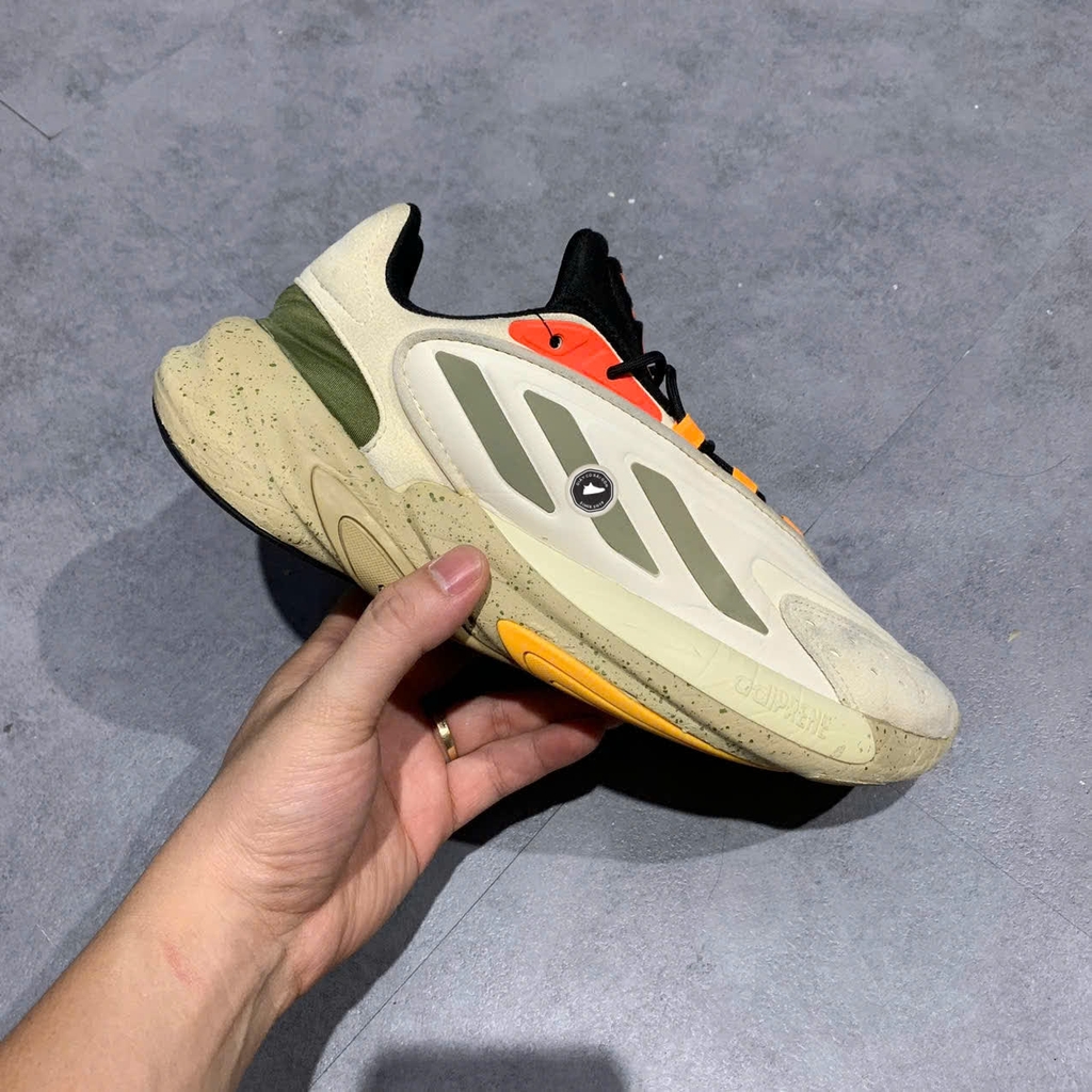 Adidas Ozelia là sự kết hợp giữa phong cách chạy bộ hiện đại và tinh thần retro thập niên ’90, mang đến sự thoải mái và phong cách. Phiên bản “Wonder White” sở hữu phối màu nền kem nhạt (cream), kết hợp với sọc 3-stripes phản quang màu xanh phai (Orbit Green) và các điểm nhấn màu đen (Core Black). Upper làm từ giả da lộn (suede) và synthetic leather, đế giữa sử dụng công nghệ Adiprene nhẹ nhàng – đem lại đệm êm “cloud-like” – và phần outsole được làm từ Nike Grind tái chế bền bỉ. Mẫu giày này được sản xuất ngày 29–30/12/2021.