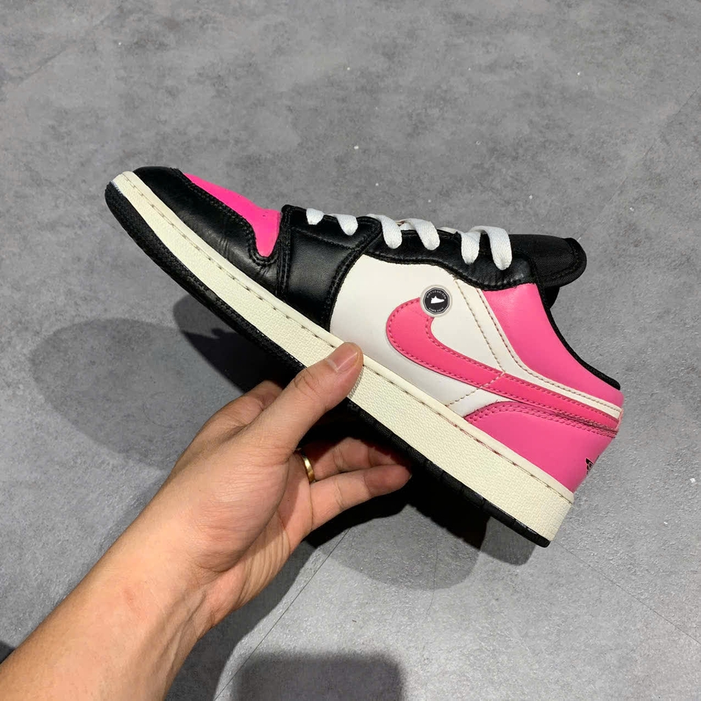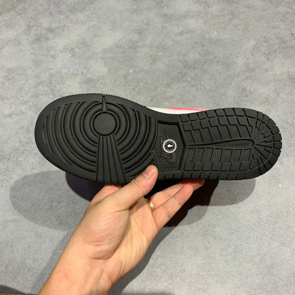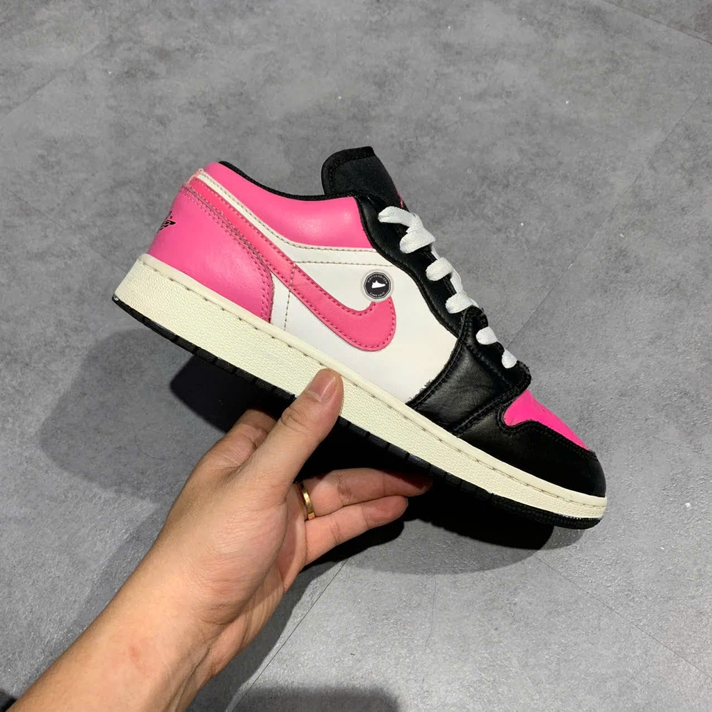 Đôi Air Jordan 1 Low “Pinksicle” GS là phiên bản đường phố thời thượng với upper da phối lớp, form low-top truyền thống của AJ1. Thiết kế nổi bật ở phần toe box, heel và Swoosh được nhấn nhá bằng tông “Pinksicle”, tạo vẻ nổi bật hài hòa với nền trắng và điểm nhấn đen khác biệt. Midsole trắng êm ái, đế ngoài bằng cao su bám đường tốt, tích hợp công nghệ Air mang lại trải nghiệm êm và nhẹ. Ra mắt vào ngày 1/7/2020 với giá bán lẻ khoảng $75.