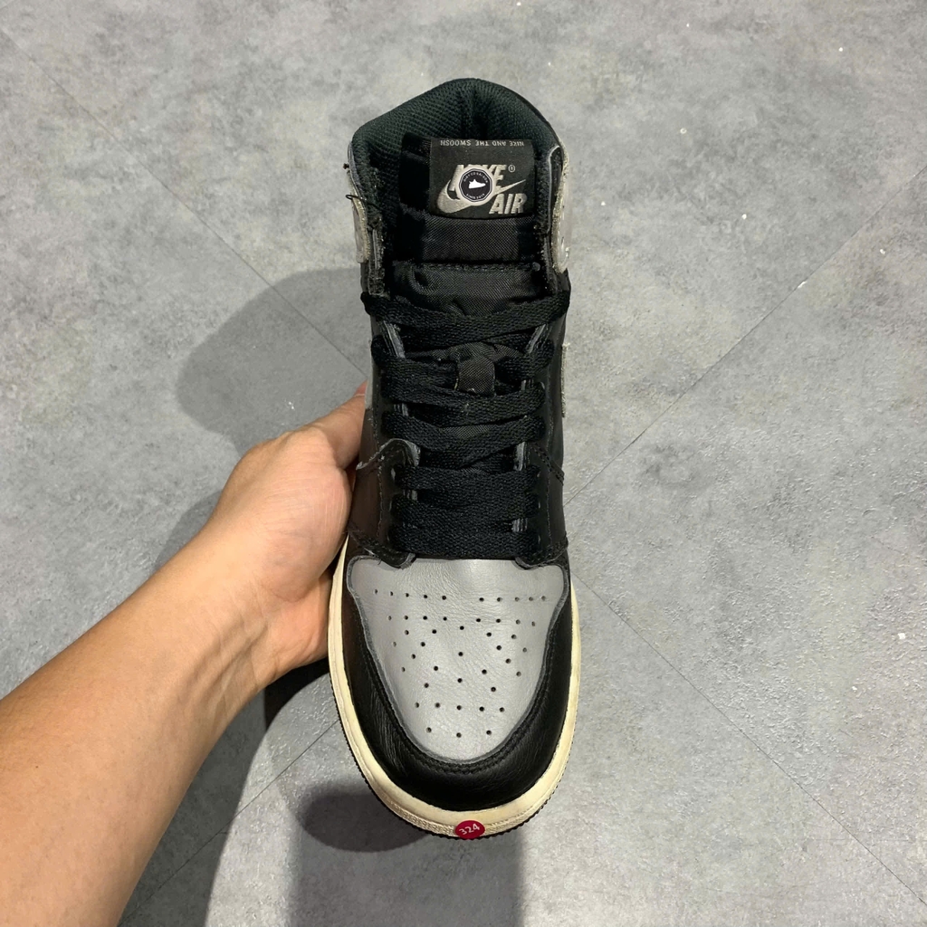 📝 Mô tả chi tiết sản phẩm: Giày có thiết kế cổ cao biểu tượng của dòng Air Jordan 1, với logo Nike Air cổ điển trên lưỡi gà và logo Wings ở cổ giày. Thân giày làm từ da cao cấp với các mảng màu đen và xám trung tính, kết hợp đế giữa màu trắng và đế ngoài đen, tạo nên phối màu "Shadow" đặc trưng. Đây là phiên bản tái phát hành năm 2018 của phối màu gốc từ năm 1985, mang đậm dấu ấn lịch sử của dòng Air Jordan 1. Nhấn giày hãng 2hand chính hãng đã qua sử dụng tại Giày Cũ Sài Gòn.