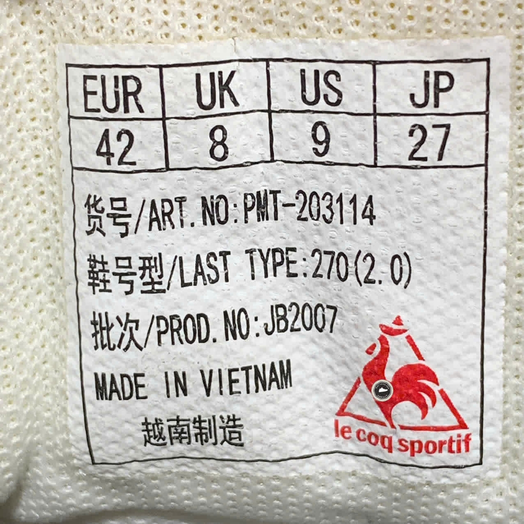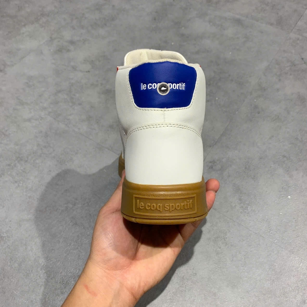 Thiết kế: Mũi giày bo tròn, với ba sọc đặc trưng của Le Coq Sportif ở hai bên, cùng với logo nhỏ ở lưỡi gà, tạo điểm nhấn thời trang.