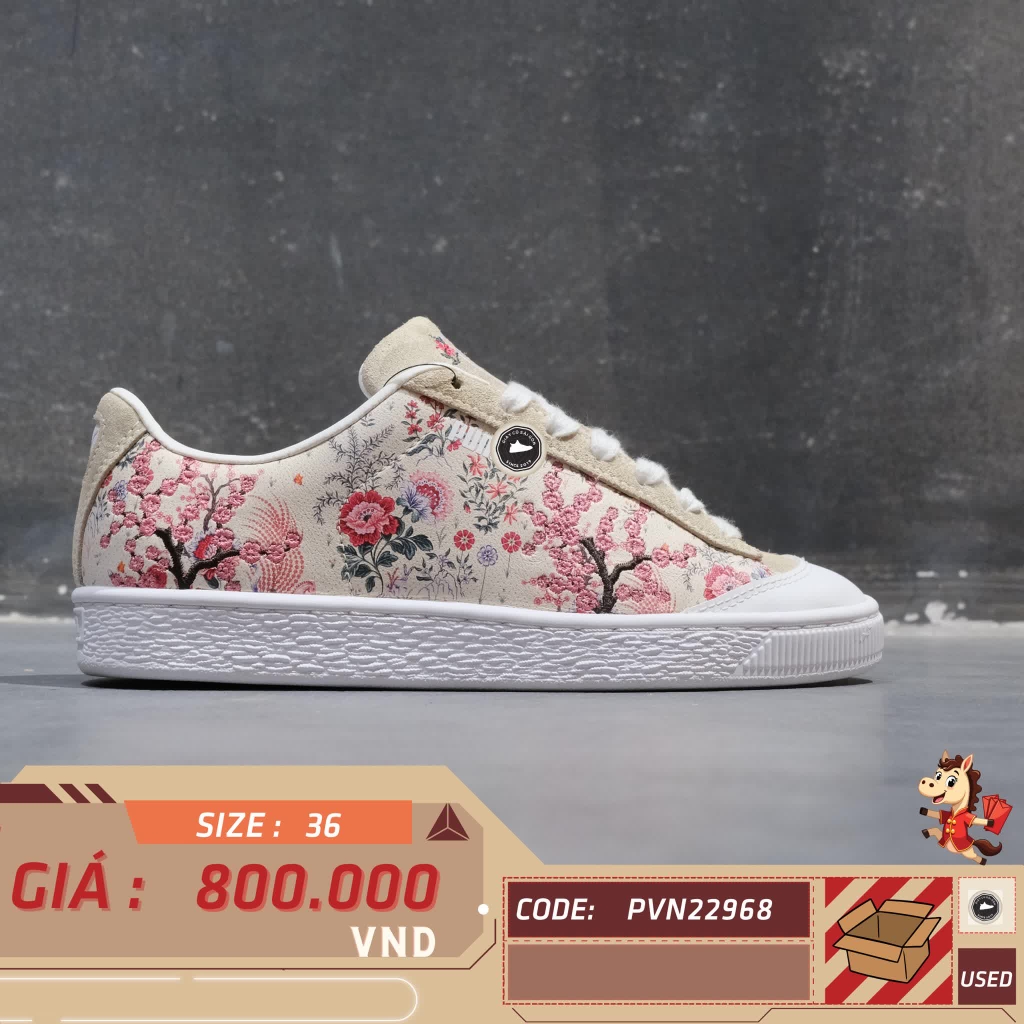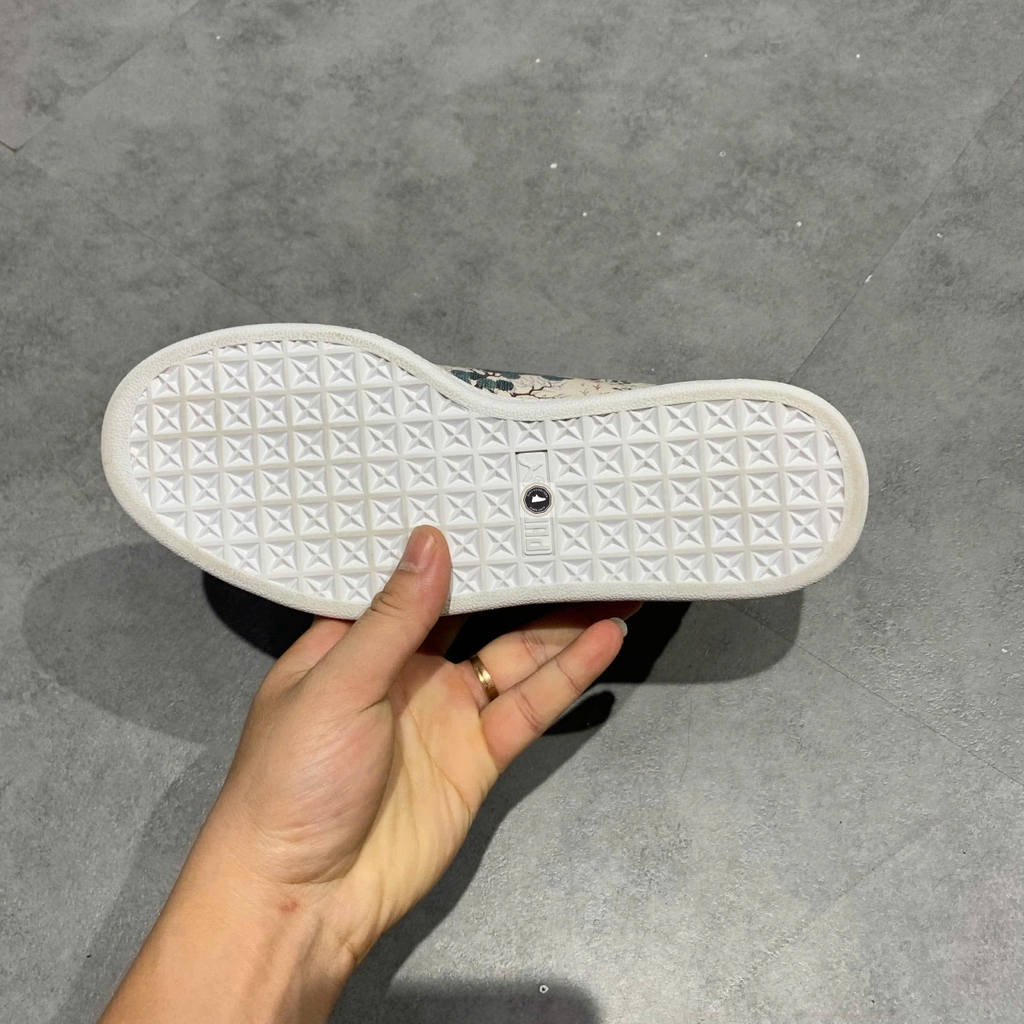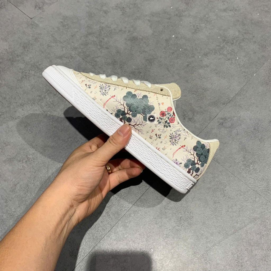 📝 Mô tả: Đây là phiên bản giới hạn (Limited Edition) đánh dấu sự hợp tác giữa PUMA và thương hiệu di sản nước Anh - Liberty of London. Đôi giày khoác lên mình họa tiết hoa (Floral) vẽ tay trứ danh của Liberty trên nền màu Birch (màu kem/be) cực kỳ trang nhã và sang trọng. Thiết kế dựa trên form dáng Puma Basket cổ điển, sử dụng chất liệu da cao cấp mềm mại, logo Puma Formstrip được cách điệu tinh tế. Một mẫu giày vừa mang nét đẹp nghệ thuật, vừa đậm chất thời trang vintage. Giày 2hand chính hãng đã qua tuyển chọn kỹ lưỡng.