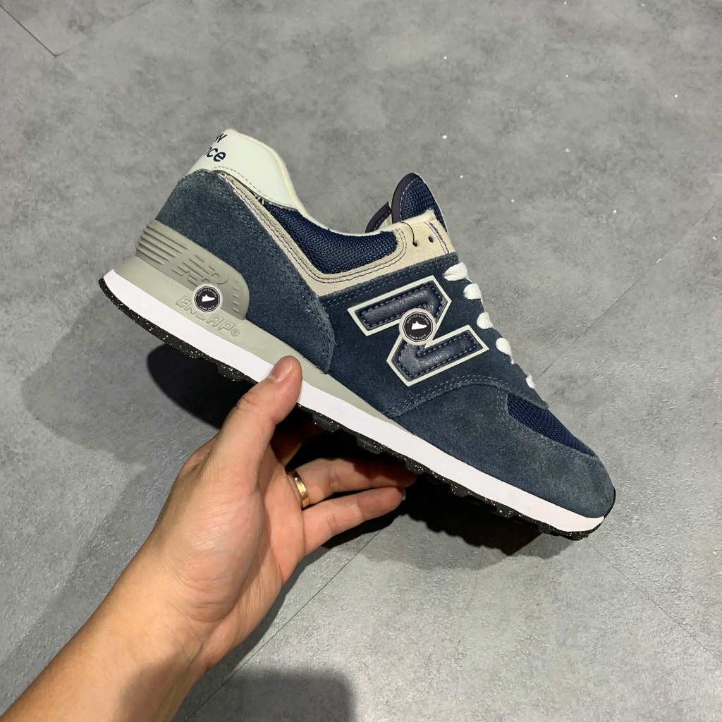 New Balance 574 ML574EVN thuộc dòng sneaker biểu tượng của NB, mang phong cách retro runner quen thuộc. Upper sử dụng da lộn cao cấp kết hợp vải mesh thoáng khí, đảm bảo độ bền và thoải mái khi mang. Phối màu xanh navy chủ đạo kết hợp điểm nhấn trắng và xám, vừa tinh tế vừa dễ phối cùng nhiều outfit khác nhau. Đế ENCAP đặc trưng mang đến sự êm ái, bền bỉ và hỗ trợ tối ưu cho bàn chân.