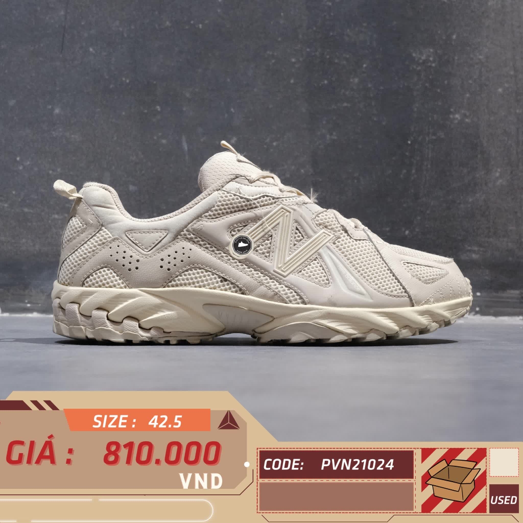 📝 Mô tả chi tiết sản phẩm: Lấy cảm hứng từ những đôi giày chạy địa hình thập niên 2000, New Balance 610 'Timberwolf Moonbeam' mang đến thiết kế độc đáo với sự kết hợp giữa da nubuck và lớp lưới thoáng khí. Đệm midsole C-CAP giúp hỗ trợ lâu dài và thoải mái. Phối màu Timberwolf, Moonbeam và Antique White (kem) tạo nên vẻ ngoài trung tính, dễ phối đồ. Nhấn giày hãng 2hand chính hãng đã qua sử dụng tại Giày Cũ Sài Gòn.