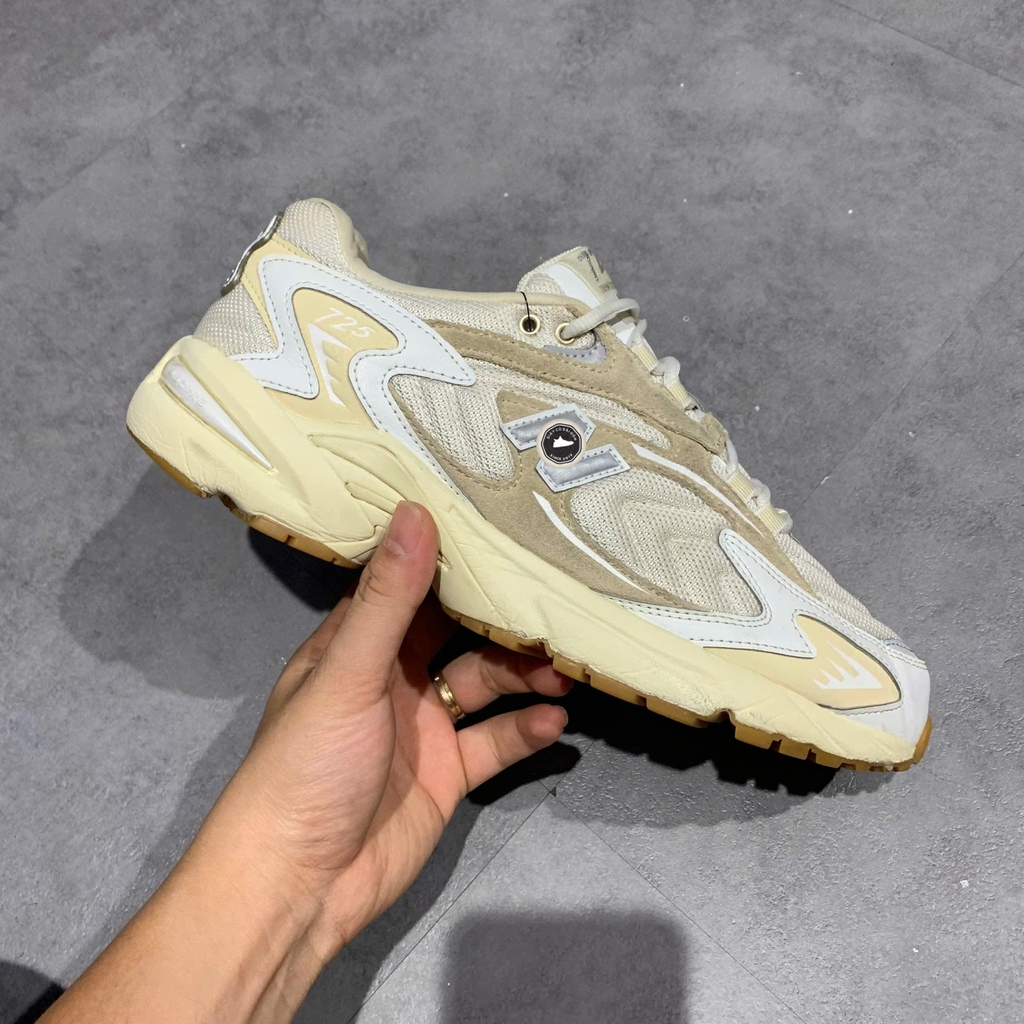 📝 Mô tả chi tiết sản phẩm: Giày New Balance 725 Bone Metallic Silver ML725T có thiết kế lấy cảm hứng từ những đôi giày chạy bộ thập niên 2000, mang đến vẻ ngoài cổ điển pha lẫn hiện đại. Phần upper được làm từ sự kết hợp chất liệu tổng hợp và lưới thoáng khí, tạo cảm giác thoải mái và bền bỉ. Phối màu Bone (trắng kem) với các chi tiết màu trắng và bạc ánh kim (Metallic Silver) mang đến vẻ ngoài tinh tế và dễ phối đồ. Đệm midsole C-CAP cung cấp khả năng hỗ trợ bền bỉ, cùng với công nghệ ABZORB giúp tăng cường sự ổn định cho bàn chân và đế ngoài cao su tăng độ bám. Nhấn giày hãng 2hand chính hãng đã qua sử dụng tại Giày Cũ Sài Gòn.