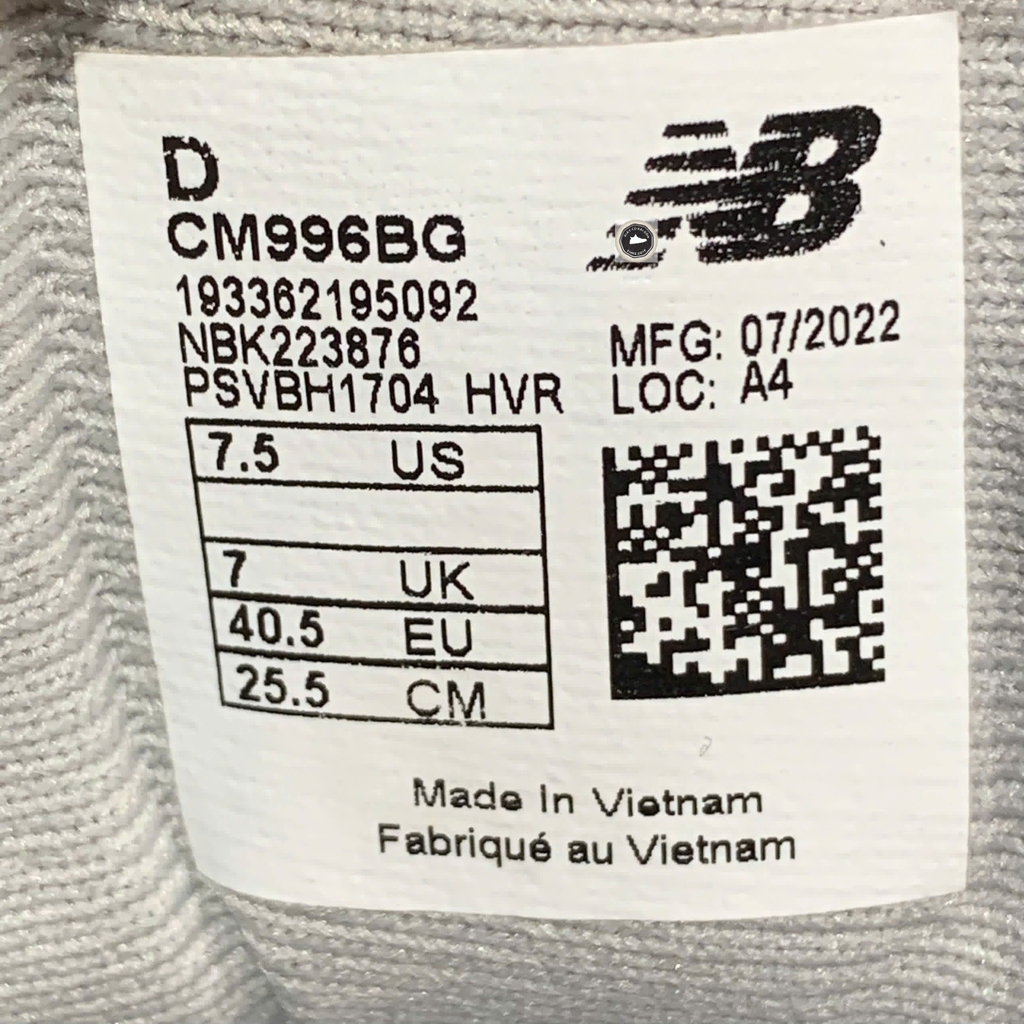 Dòng 996 là một trong những biểu tượng của New Balance, nổi bật với thiết kế cổ điển pha hiện đại, cực kỳ dễ mang hằng ngày. Phiên bản CM996BG với phối màu xám – bạc (Grey/Silver) tối giản, phù hợp nhiều phong cách từ basic đến streetwear.