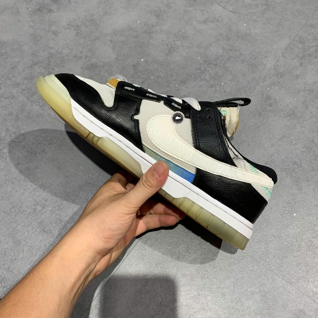 📝 Mô tả chi tiết sản phẩm: Nike Air Dunk Jumbo Unlock Your Space Panda mang phối màu "Panda" cổ điển với các chi tiết màu xanh băng (Ice Blue) và xanh bạc hà (Light Menta). Thân giày được làm từ lưới kết hợp các lớp phủ da, cùng lưỡi gà đệm dày. Điểm nhấn bao gồm dấu Swoosh sọc, các mảng màu gradient, logo lưỡi gà cỡ lớn lộ foam, và dấu Swoosh phản quang 3M. Đế ngoài trong mờ màu xanh băng độc đáo và công nghệ đệm Air mang lại sự thoải mái. Nhấn giày hãng 2hand chính hãng đã qua sử dụng tại Giày Cũ Sài Gòn.