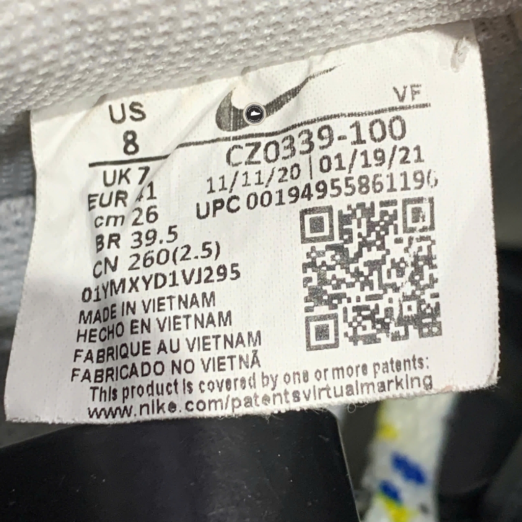 Nike Air Force 1 Low “Paint Splatter” CZ0339-100 là phiên bản sáng tạo của dòng AF1 cổ điển, ra mắt vào năm 2021. Thân giày sử dụng da trắng tinh khiết làm nền, kết hợp những điểm họa tiết paint splatter đa sắc—gồm xanh, đen, đỏ và vàng—tạo cảm giác nghệ thuật và phá cách. Form giày vẫn giữ nguyên kiểu Air Force 1 Low với đế Air đầy êm ái và outsole cao su chắc chắn, giữ trọn nét thời trang và thoải mái cho người sử dụng.