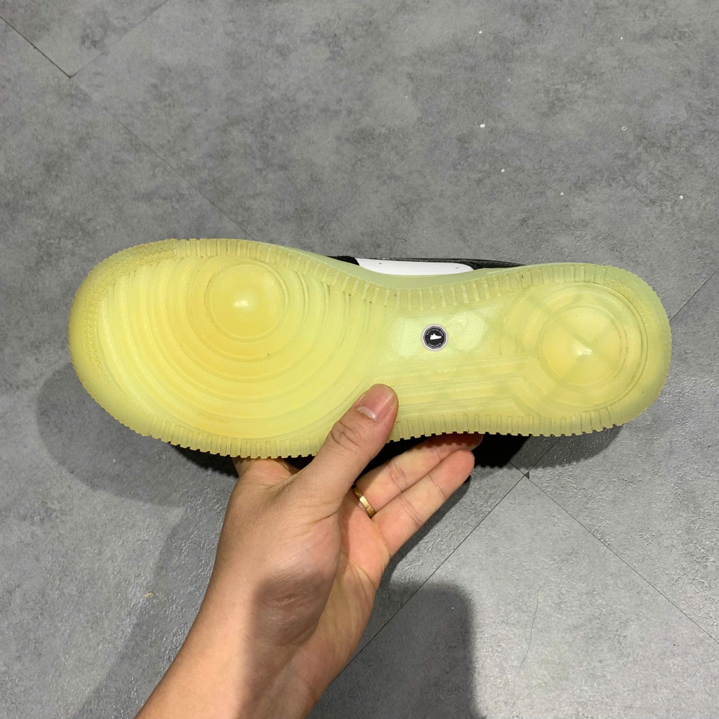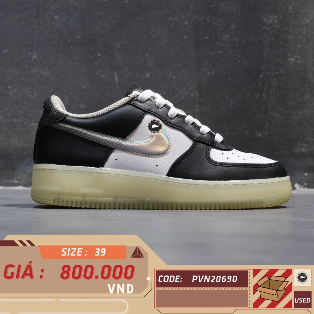 📝 Mô tả chi tiết sản phẩm: Giày có thiết kế cổ thấp kinh điển của dòng Air Force 1, với phần thân trên làm từ da cao cấp màu trắng và đen, cùng các lỗ thoáng khí. Điểm nhấn là logo Swoosh, tag lưỡi gà và phụ kiện dây giày ánh cầu vồng độc đáo. Phần gót giày nổi bật với họa tiết vảy rồng, cùng đế ngoài bán trong suốt màu xanh lá, lấy cảm hứng từ chủ đề Năm Rồng âm lịch. Nhấn giày hãng 2hand chính hãng đã qua sử dụng tại Giày Cũ Sài Gòn.