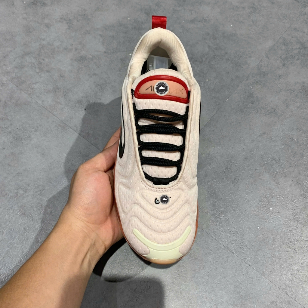 📝 Mô tả chi tiết sản phẩm: Thiết kế lifestyle giày Nike Air Max 720 với upper bằng mesh/chất liệu dệt thoáng khí, phối màu Light Soft Pink và Coral Stardust làm chủ đạo, các chi tiết Black và Gym Red làm điểm nhấn. Đế Air Max tượng trưng, cao, êm ái, tạo chiều cao nhẹ nhàng khi mang và độ đàn hồi tốt. Nguồn gốc: mẫu chính hãng phát hành ngày 10-03-2019. Nhấn mạnh giày 2hand chính hãng đã qua sử dụng tại Giày Cũ Sài Gòn.