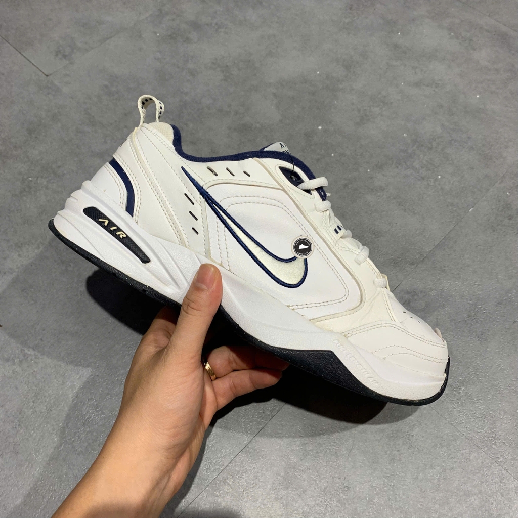 📝 Mô tả chi tiết sản phẩm: Nike Air Monarch IV 415445-102 là mẫu giày tập luyện và đi hàng ngày được yêu thích với thiết kế bền bỉ và kiểu dáng chunky cổ điển. Thân giày được làm từ sự kết hợp giữa da và da tổng hợp, mang lại vẻ ngoài cao cấp và độ bền vượt trội. Phối màu chủ đạo là trắng tinh khôi kết hợp với các chi tiết màu bạc kim loại (Metallic Silver) tạo điểm nhấn hiện đại. Giày được trang bị bộ đệm Nike Air-Sole toàn chiều dài mang lại cảm giác êm ái, thoải mái cho mỗi bước chân, cùng với đế ngoài cao su đặc bền bỉ giúp tăng cường độ bám trên nhiều bề mặt. Mẫu giày này ra mắt lần đầu vào khoảng năm 2018. Nhấn giày hãng 2hand chính hãng đã qua sử dụng tại Giày Cũ Sài Gòn.