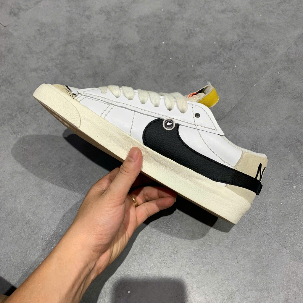 📝 Mô tả chi tiết sản phẩm: Nike Blazer Low '77 Jumbo "White Black Sail" có thiết kế cổ điển được làm mới với logo Swoosh phóng đại bằng da màu đen, dây giày to bản và các lớp phủ bằng da lộn ở gót và mũi giày. Thân giày bằng da trắng kết hợp cùng đế giữa cao su màu trắng ngà lưu hóa và đế ngoài vân xương cá mang lại độ bám tốt. Đôi giày cân bằng giữa nét cổ điển và hiện đại, mang lại sự thoải mái và độ bám cho người mang. Nhấn giày hãng 2hand chính hãng đã qua sử dụng tại Giày Cũ Sài Gòn.