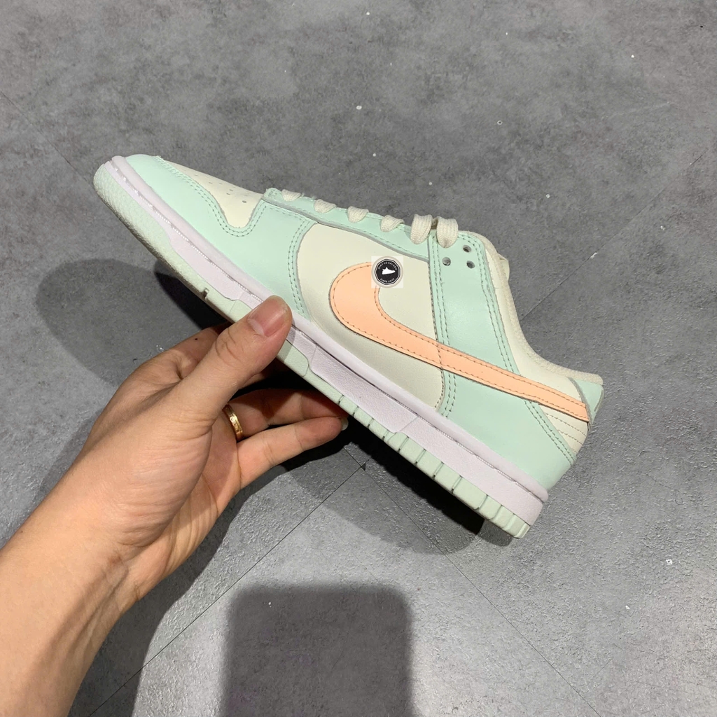 – Nike Dunk Low “Barely Green” là mẫu sneaker low-top kinh điển của dòng Nike Dunk với phối màu Sail/Crimson Tint/Barely Green/White mềm mại, mix giữa tông xanh pastel và trắng tinh tế – một trong những phối màu được yêu thích trong các bản release của Dunk Low WMNS. Thiết kế Dunk vốn xuất phát từ basketball nhưng đã được streetwear hóa và trở thành biểu tượng thời trang everyday.