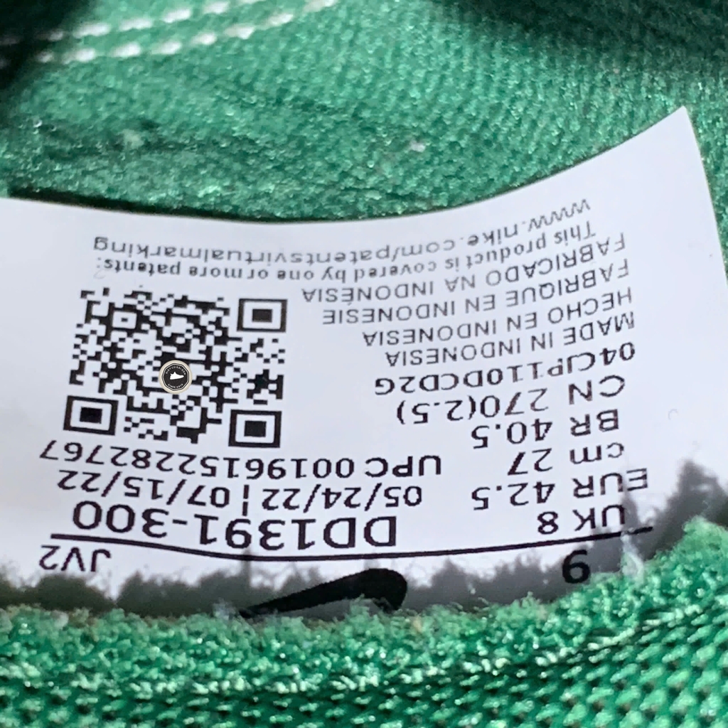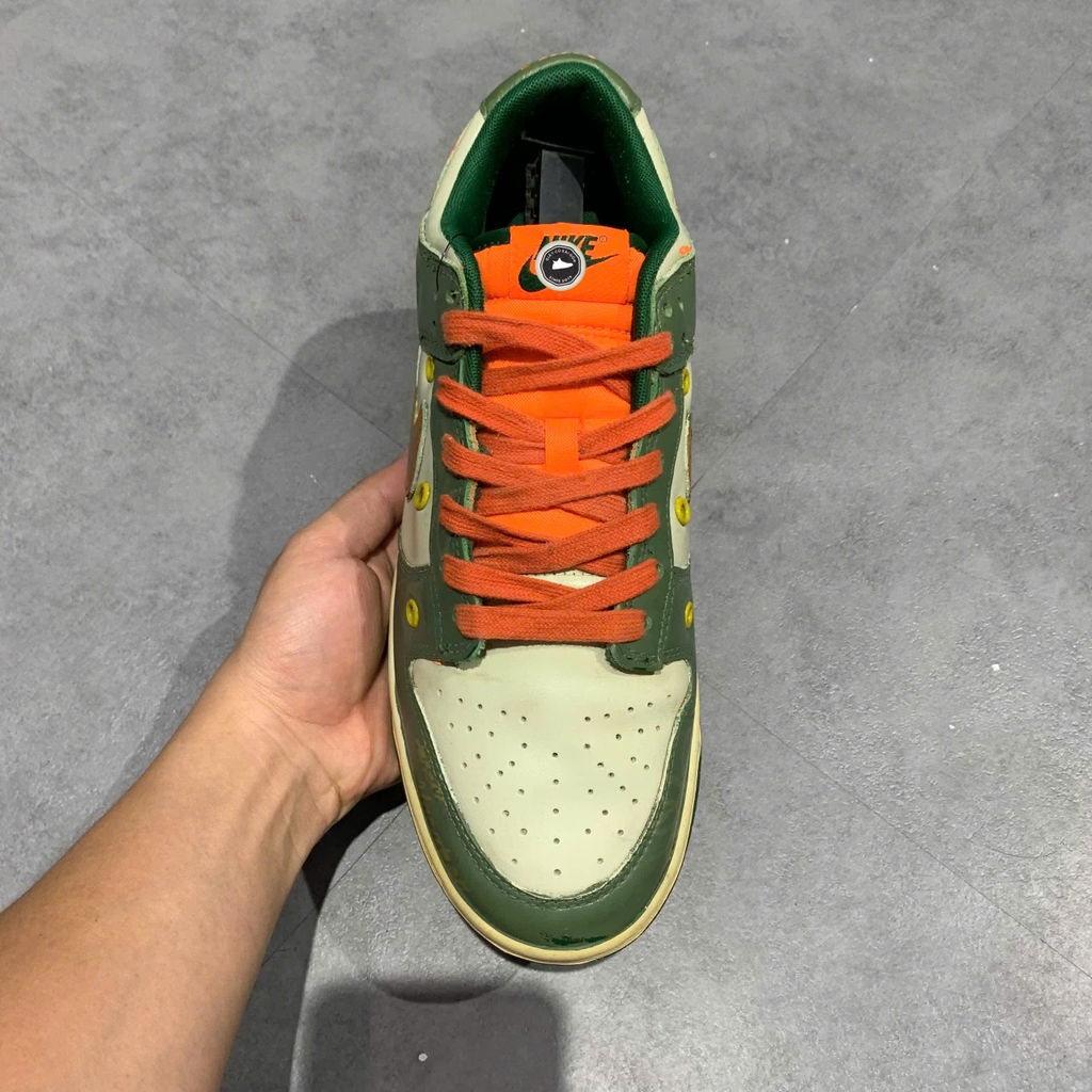 Đôi Nike Dunk Low Miami Hurricanes mã DD1391-300 lấy cảm hứng từ màu sắc trường đại học Miami — phối xanh lá (Gorge Green) và cam rực rỡ (Total Orange), có base da trắng làm nền. Upper bằng da cao cấp, chất liệu bóng nhẹ các chi tiết phủ đen hoặc trắng nhằm tạo độ tương phản, đế cao su firm, form low top cổ thấp dễ mang. Thiết kế rõ nét mang style sporty + college sneaker.