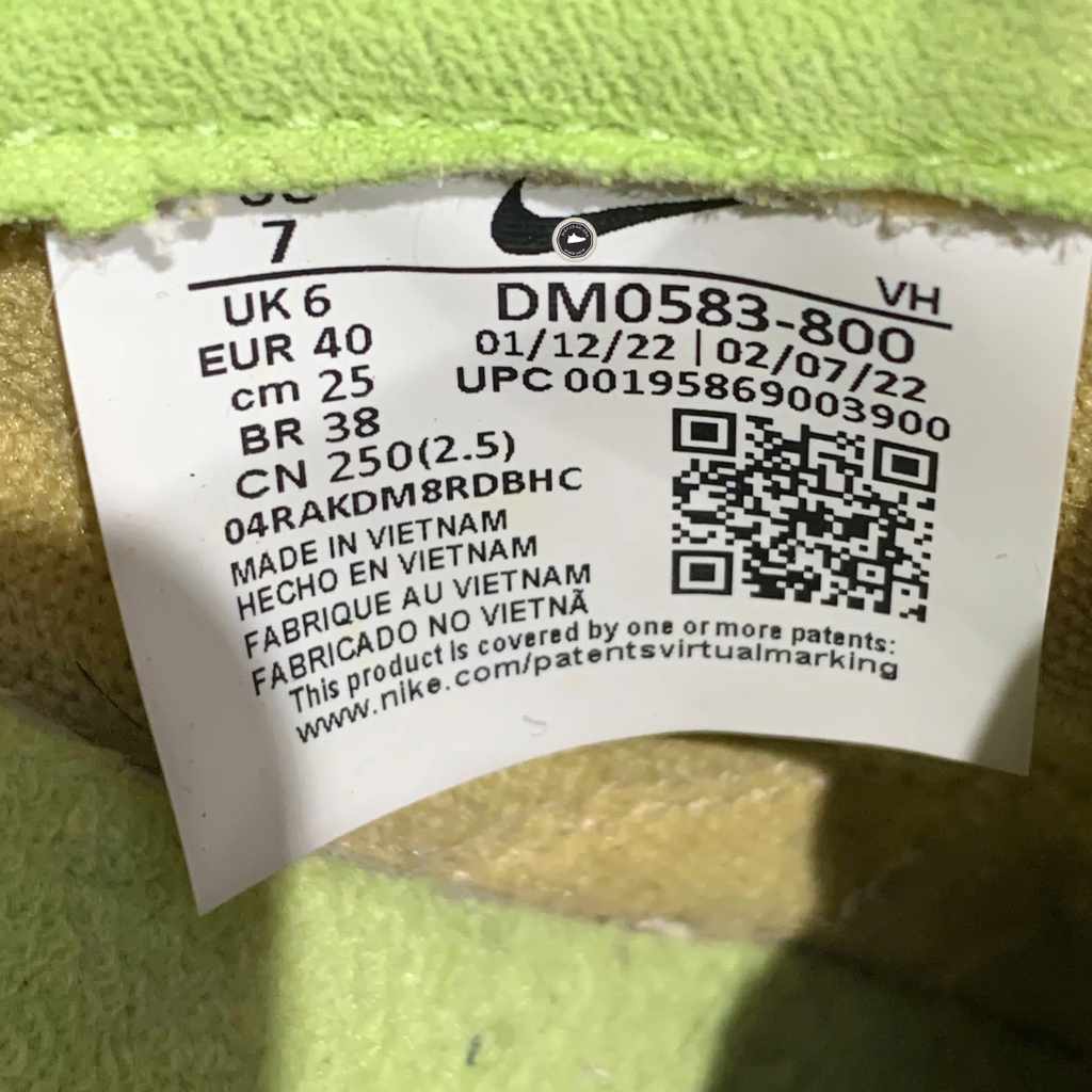 📝 Mô tả chi tiết sản phẩm: Giày có thiết kế độc đáo, lấy cảm hứng từ chủ đề "Sun Club" với cấu trúc phối nhiều chất liệu. Thân giày kết hợp giữa các mảng vải dệt ấm áp và lớp phủ da lộn màu xanh lá cây nhạt, cùng các mảng màu không đối xứng của xanh dương, hồng và xanh lime trên nền vải dệt có kết cấu. Điểm nhấn là logo "Nike Sun Club" được thêu ở gót chân và tag lưỡi gà, cùng hình ảnh cây cọ và mặt trời cười thêu ở gót. Các dấu Swoosh cũng được phối màu xanh dương và vàng lệch tông độc đáo. Đế giày màu trắng với các hạt lốm đốm xanh lá cây nhạt, được làm một phần từ vật liệu tái chế. Nhấn giày hãng 2hand chính hãng đã qua sử dụng tại Giày Cũ Sài Gòn.