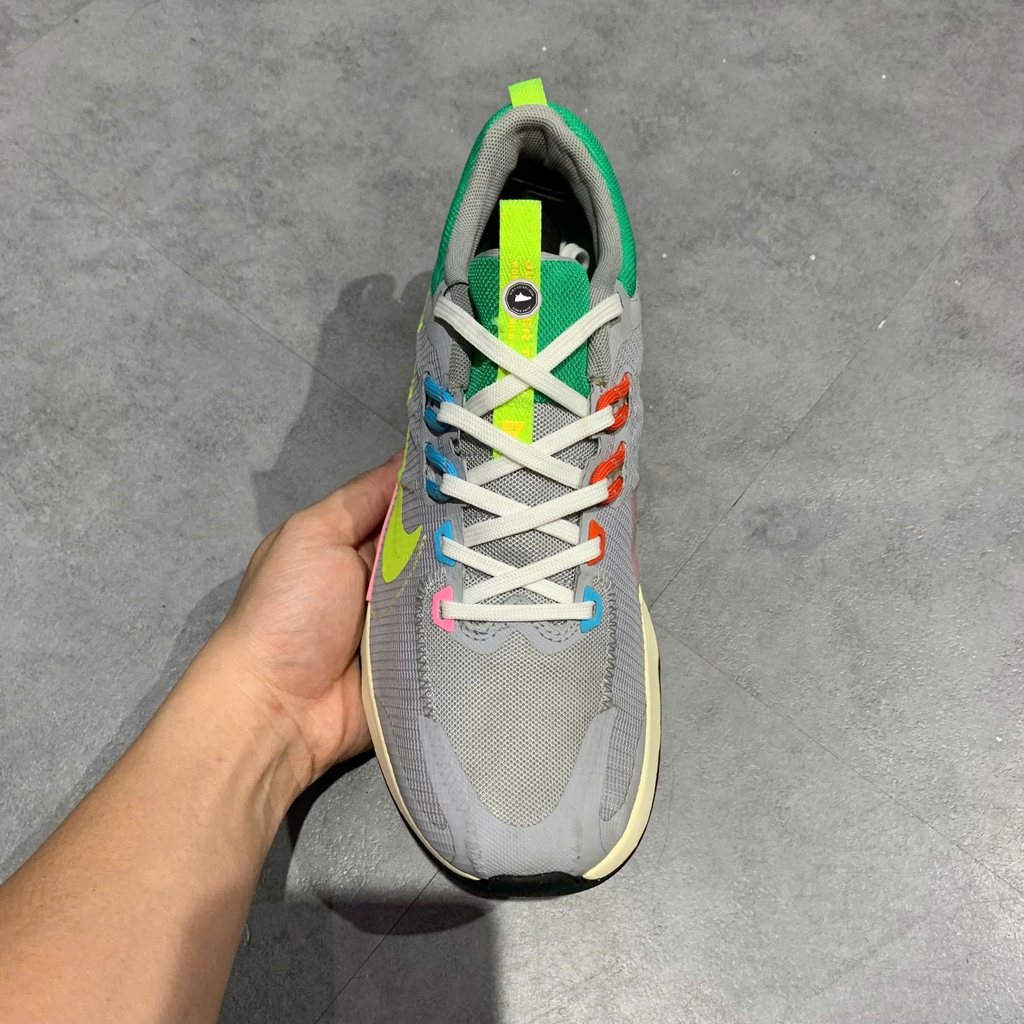 📝 Mô tả: Nike Juniper Trail 2 Next Nature là dòng giày chạy địa hình (trail running) chuyên dụng, được thiết kế để chinh phục những cung đường mòn gồ ghề. Phần thân giày (upper) là sự kết hợp giữa lưới kỹ thuật thoáng khí và các lớp phủ bền bỉ, giúp bảo vệ chân khỏi các tác động từ môi trường bên ngoài. Hệ thống dây cáp Flywire được tích hợp khéo léo giúp ôm sát và cố định bàn chân chắc chắn trong mọi chuyển động. Điểm nhấn đặc biệt nằm ở phần đế ngoài bằng cao su với các vấu gai (lugs) đa hướng, mang lại độ bám cực tốt trên cả bề mặt khô ráo lẫn trơn trượt. Phối màu Wolf Grey kết hợp cùng các chi tiết Volt và Pink Spell tạo nên vẻ ngoài năng động, hiện đại. Giày 2hand chính hãng đã qua tuyển chọn kỹ lưỡng.