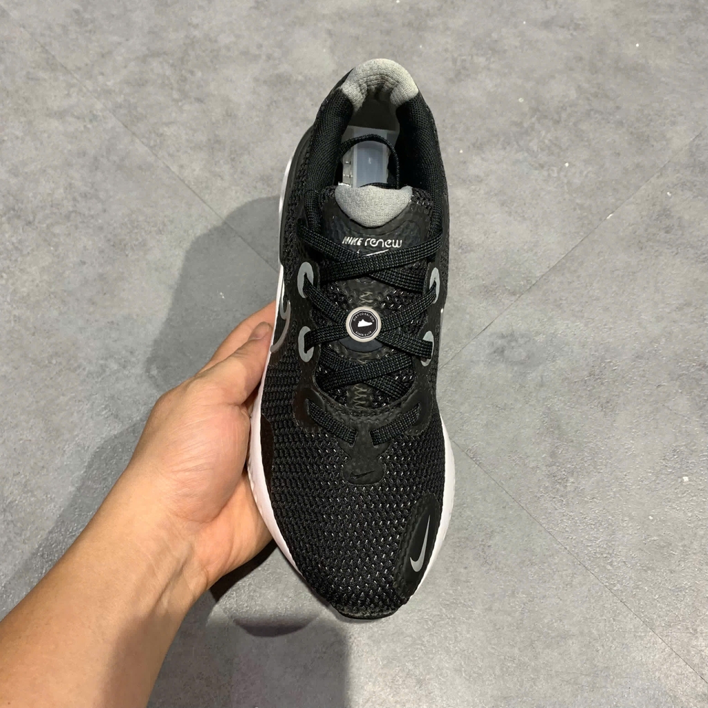 📝 Mô tả chi tiết sản phẩm: Nike Renew Run 'Black' (CK6360-008) là mẫu giày chạy bộ nữ với thiết kế nhẹ nhàng, ôm chân, mang lại sự thoải mái tối đa. Phần upper được làm từ vải lưới thoáng khí màu đen kết hợp cùng các lớp phủ hỗ trợ, tạo cảm giác dễ chịu và thông thoáng cho bàn chân. Đế giữa sử dụng công nghệ Renew foam độc quyền của Nike, cung cấp lớp đệm êm ái, đàn hồi tốt, giúp hấp thụ lực và hoàn trả năng lượng hiệu quả. Đế ngoài bằng cao su bền bỉ đảm bảo độ bám đường tốt trên nhiều bề mặt. Phối màu đen chủ đạo kết hợp với trắng, xám khói đậm và bạc ánh kim mang đến vẻ ngoài hiện đại và dễ phối đồ. Đây là giày hãng 2hand chính hãng đã qua sử dụng tại Giày Cũ Sài Gòn.