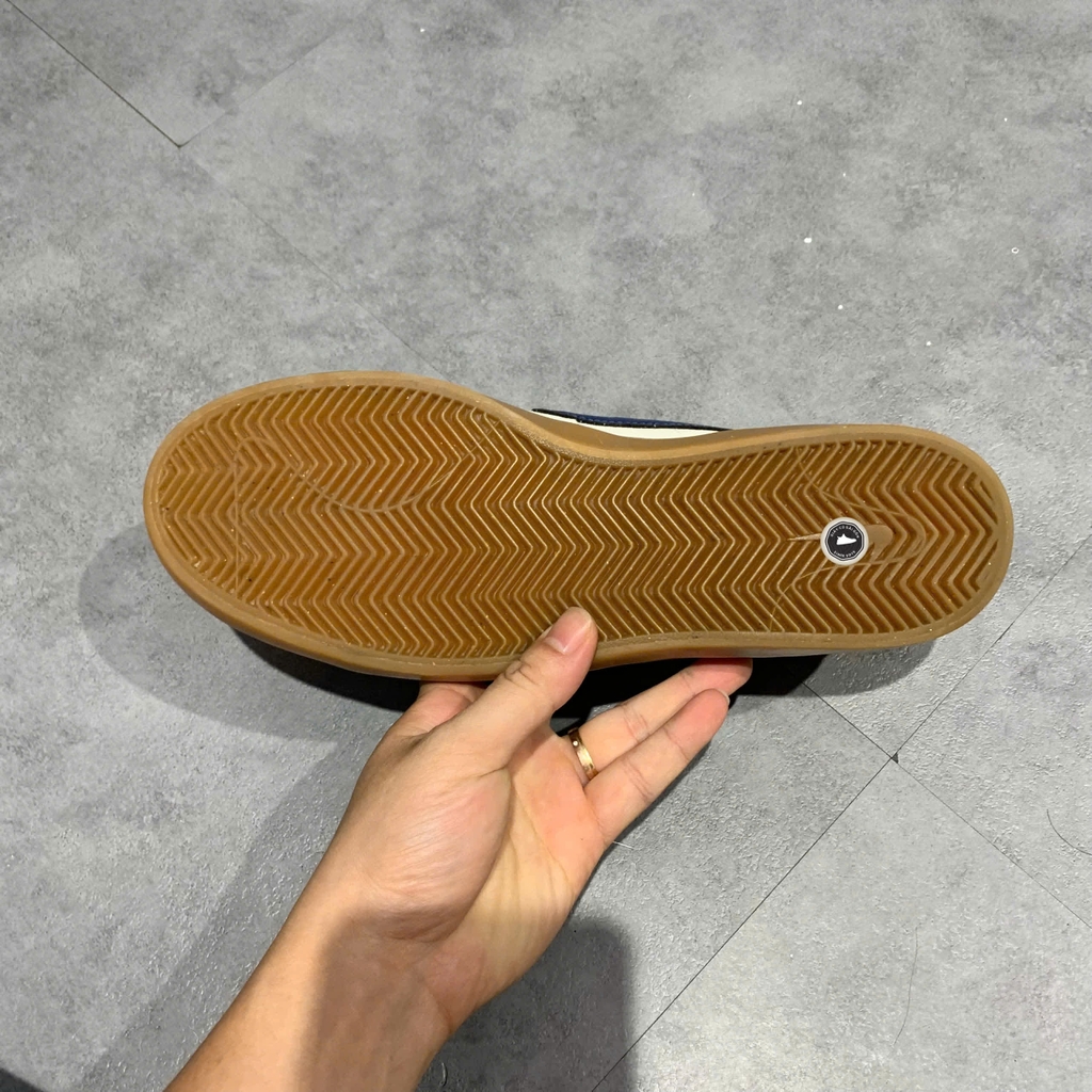 📝 Mô tả chi tiết sản phẩm: Giày được làm từ da lộn (suede) và vải canvas, với phối màu Summit White/White/Gum Light Brown/Navy. Thiết kế mang phong cách skate cổ điển, có lưỡi gà với mút lộ ra tạo vẻ vintage. Cấu trúc đế đúc lưu hóa (vulcanized) mang lại sự linh hoạt và cảm giác chân tốt. Lót giày bằng mút êm ái cùng đế ngoài cao su gum tăng độ bám. Nhấn giày hãng 2hand chính hãng đã qua sử dụng tại Giày Cũ Sài Gòn.