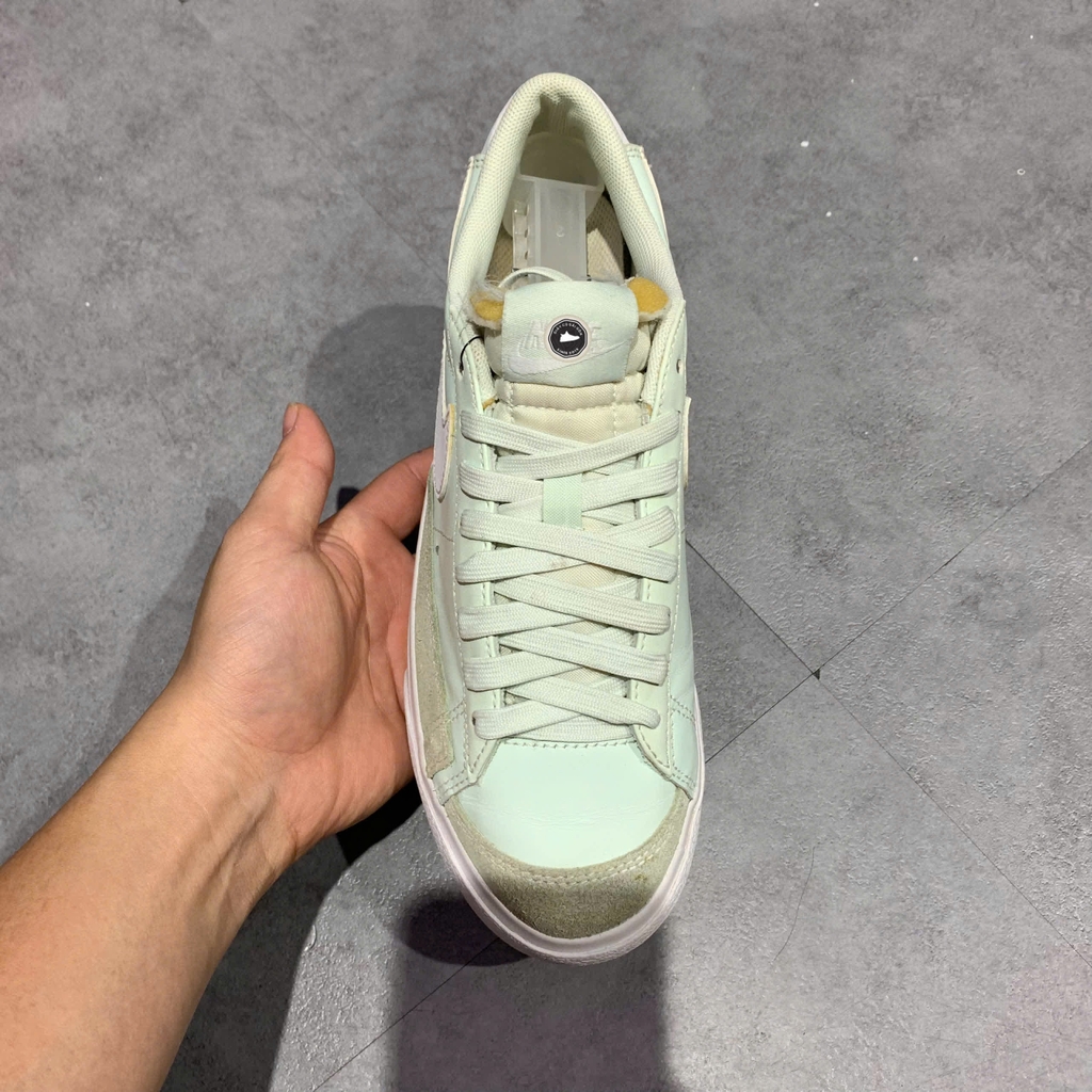 📝 Mô tả chi tiết sản phẩm: Thiết kế Blazer Low Platform với đế độn thời thượng, mang lại chiều cao vừa phải và phong cách cá tính. Thân giày bằng da cao cấp với phối màu xanh mint (Barely Green) nhẹ nhàng kết hợp trắng tinh tế, cùng điểm nhấn cam ở chi tiết nhỏ. Kiểu dáng cổ điển được nâng cấp với phần đế platform nổi bật. Nhấn giày hãng 2hand chính hãng đã qua sử dụng tại Giày Cũ Sài Gòn.