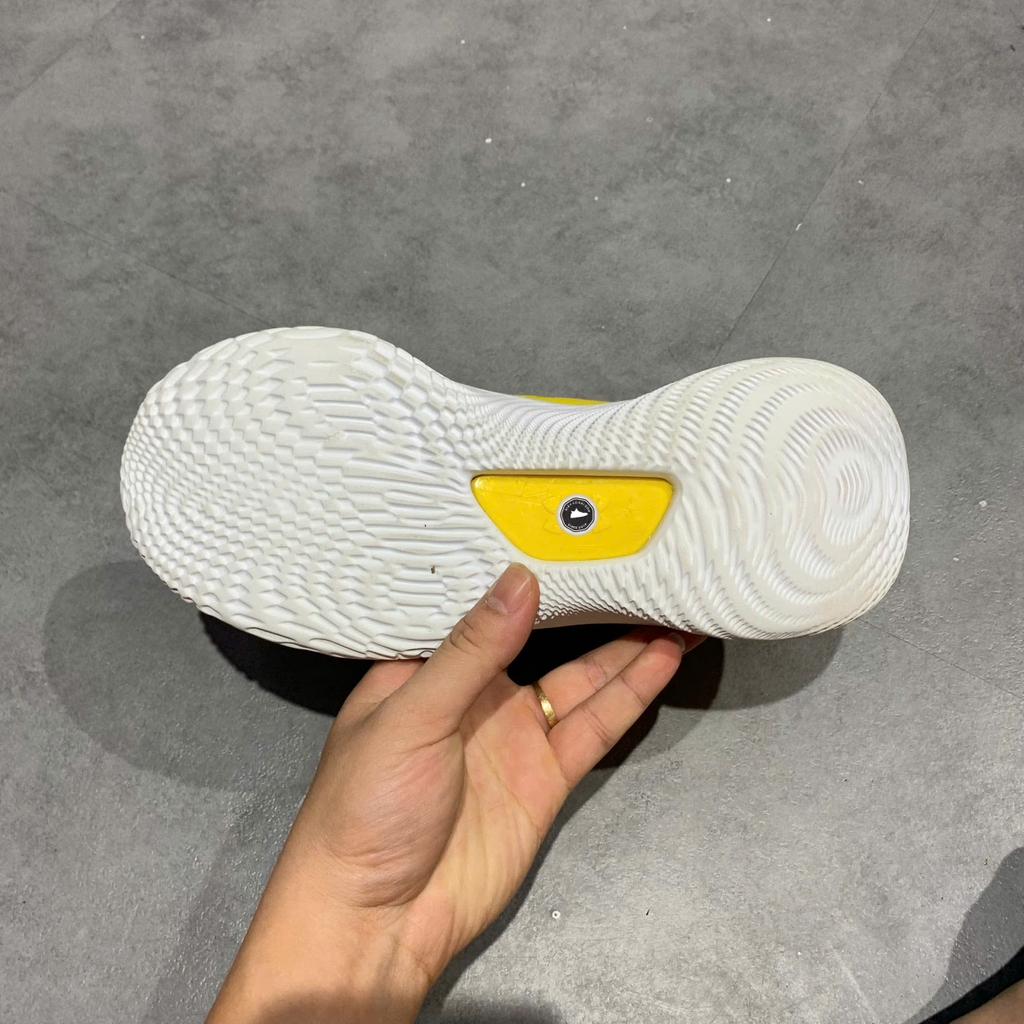 📝 Mô tả chi tiết sản phẩm: Giày là phiên bản đặc trưng thứ 8 của Stephen Curry, có thiết kế cổ thấp linh hoạt. Thân giày được làm từ sự kết hợp giữa vải dệt kim và da tổng hợp, mang lại sự nhẹ nhàng và bền bỉ. Phối màu vàng Taxi nổi bật chủ đạo, kết hợp với các chi tiết màu trắng ở đế, tạo vẻ ngoài ấn tượng. Đế ngoài UA Flow không cao su màu trắng tương phản, được tăng cường bởi tấm Pebax linh hoạt, đảm bảo độ bám và khả năng phản hồi vượt trội trên sân. Nhấn giày hãng 2hand chính hãng đã qua sử dụng tại Giày Cũ Sài Gòn.